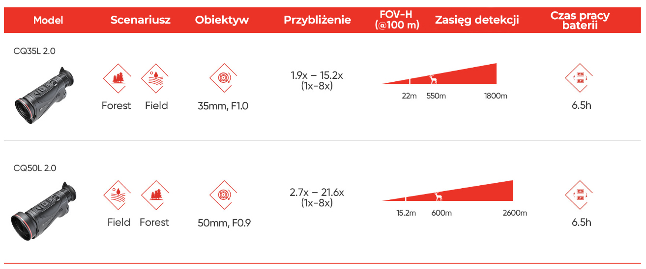 - wyjątkowo łatwe wyróżnienie zwierzyny na tle otoczenia oraz pośród przeszkód wizualnych;