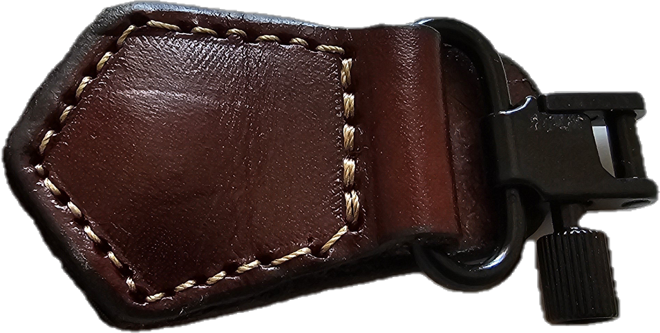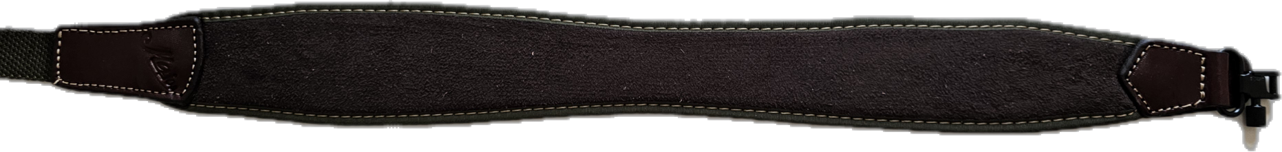 RY16 A .Zapięcie na bączek Neoprenowy pas do broni myśliwskiej w kolorze brązowym. Wykonany z neoprenu, obszyty lamówką koloru oliwkowego , wykończony brązową skórą. Szerokość 6 cm długość 115 cm