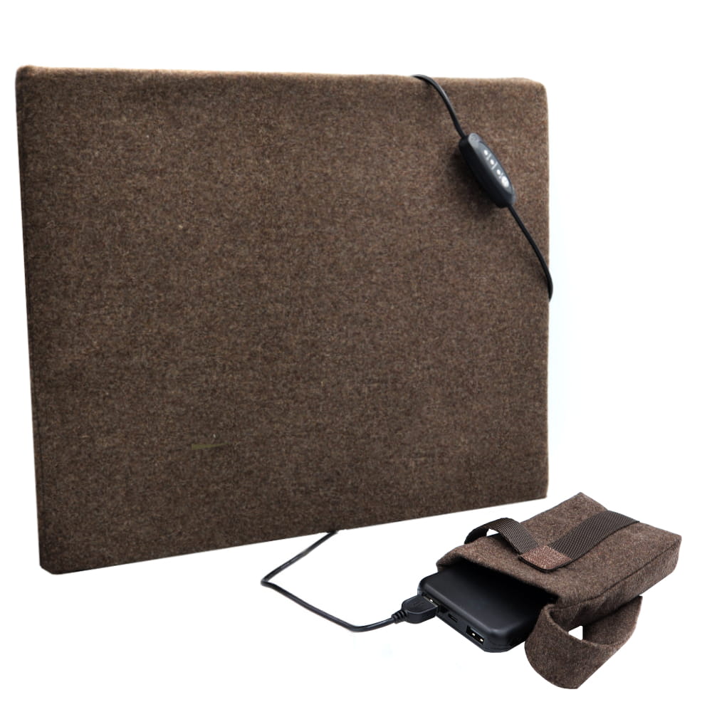 Produkt zasilany z portu USB-C. Grzanie może odbywać się za pomocą powerbanka 5V, dołączonego do zestawu. Poduszka posiada pilot do sterowania mocą grzania. Przycisk Włącz/Wyłącz odpowiada za uruchomienie po jednym kliknięciu grzania i ustawienie na poziomie "high" (wysoki). Każde następne kliknięcie reguluje grzanie maty. Całkowite wyłączenie następuje, gdy dioda świeci się na polu "low" (niskie).