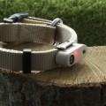 - Przyłóż urządzenie z silikonowym pierścieniem do obroży i przeciągnij silikonowy pasek pod obrożą zaciągając gumkę na rowek po drugiej stronie urządzenia.