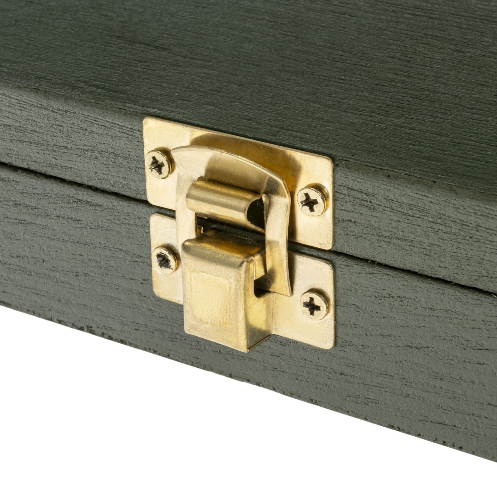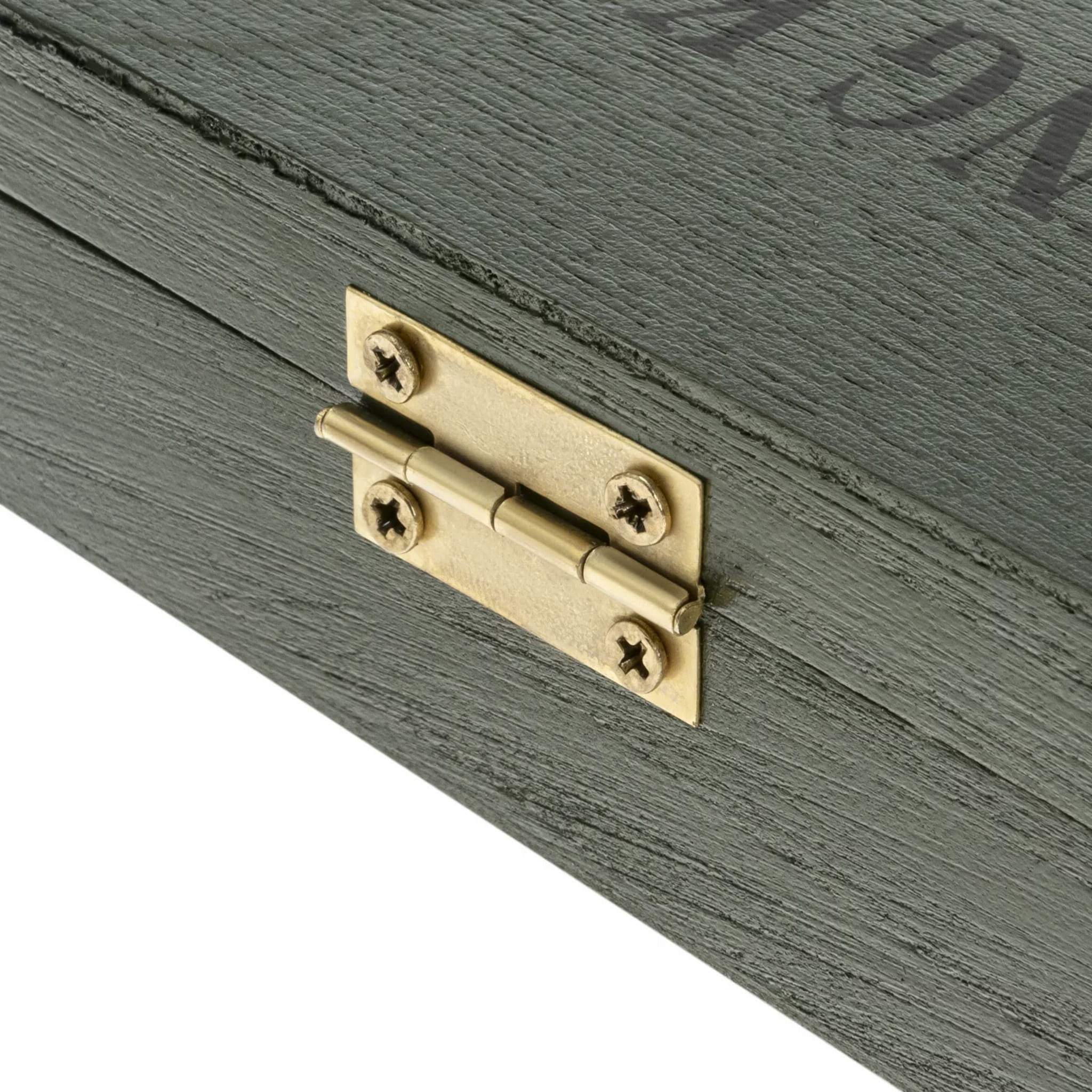 Całość zamknięta jest w estetycznym drewnianym pudełku. W środku zostało ono wyściełane miękką pianką zapobiegającą uszkodzeniom elementów. Części zestawu nie przesuwają się podczas transportu dzięki zastosowaniu zagłębień dostosowanych do ich kształtu.